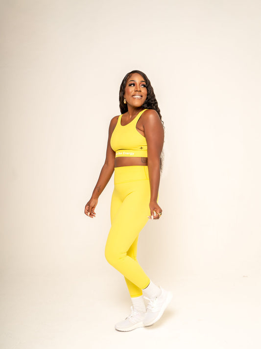 Queen Bee Energy Gym Set| Seamless Yoga Leggings+Bra Set in Yellow